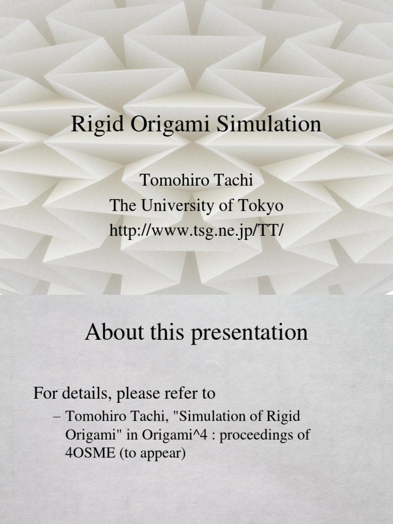 Rigid Origami Simulation Tomohiro Tachi The University of