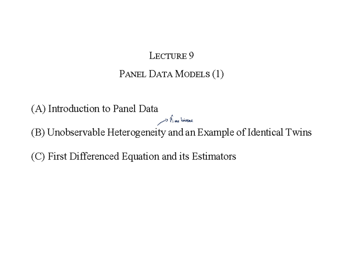 LECTURE 9: PANEL DATA MODELS - Key Concepts and Examples - Studocu