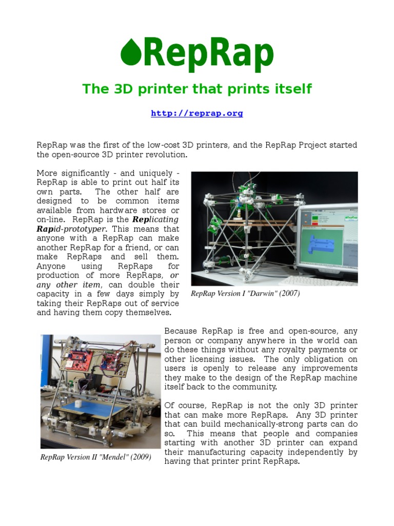 RepRap: The Self-Replicating 3D Printer | PDF | Computers