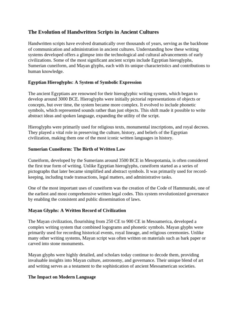 The Evolution of Handwritten Scripts in Ancient Cultures | PDF ...