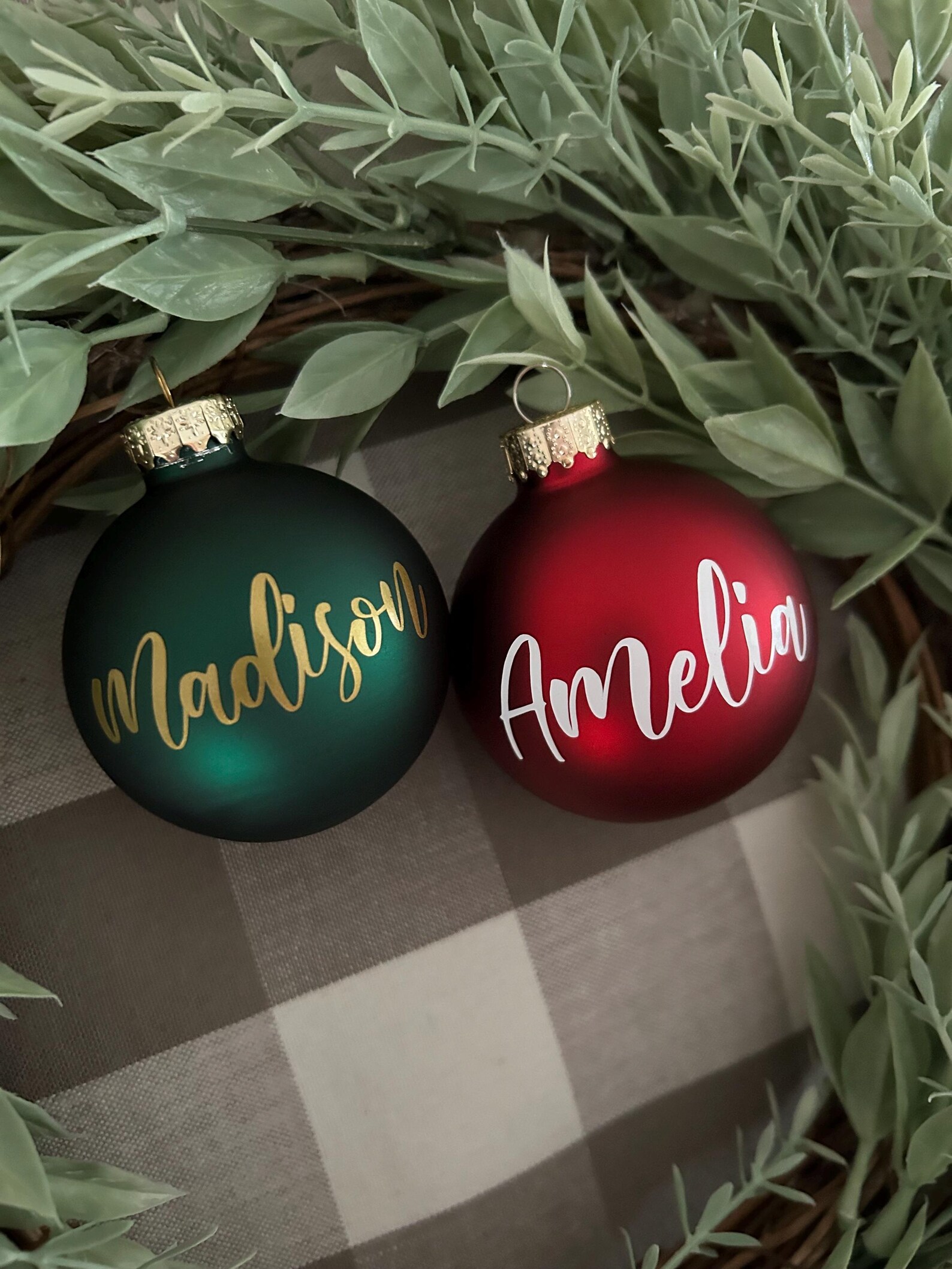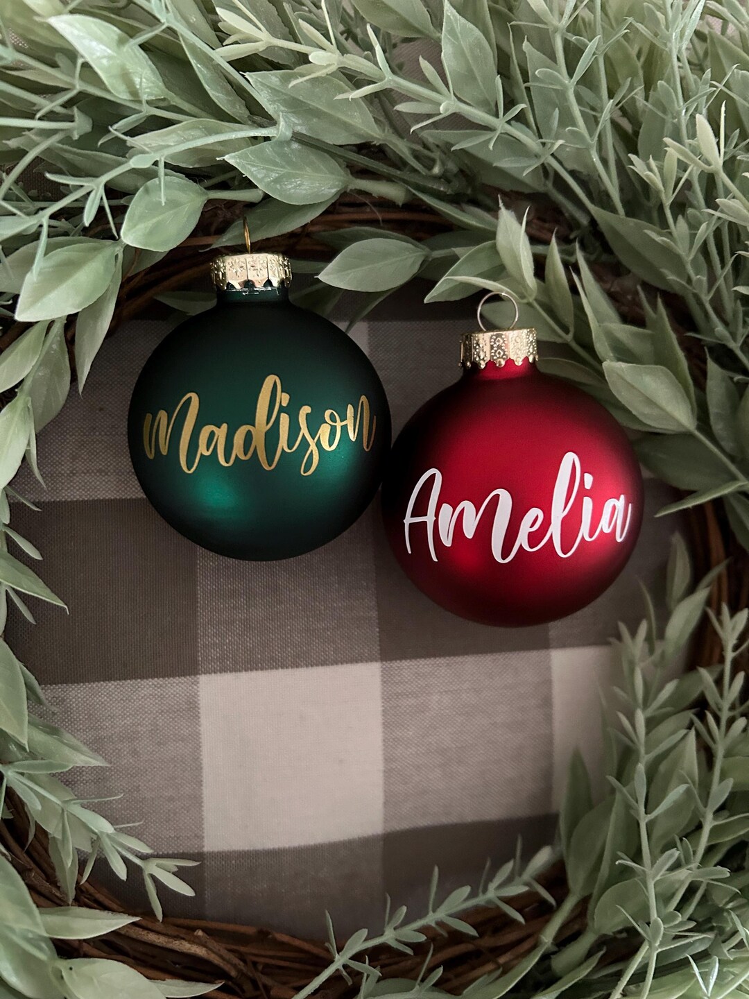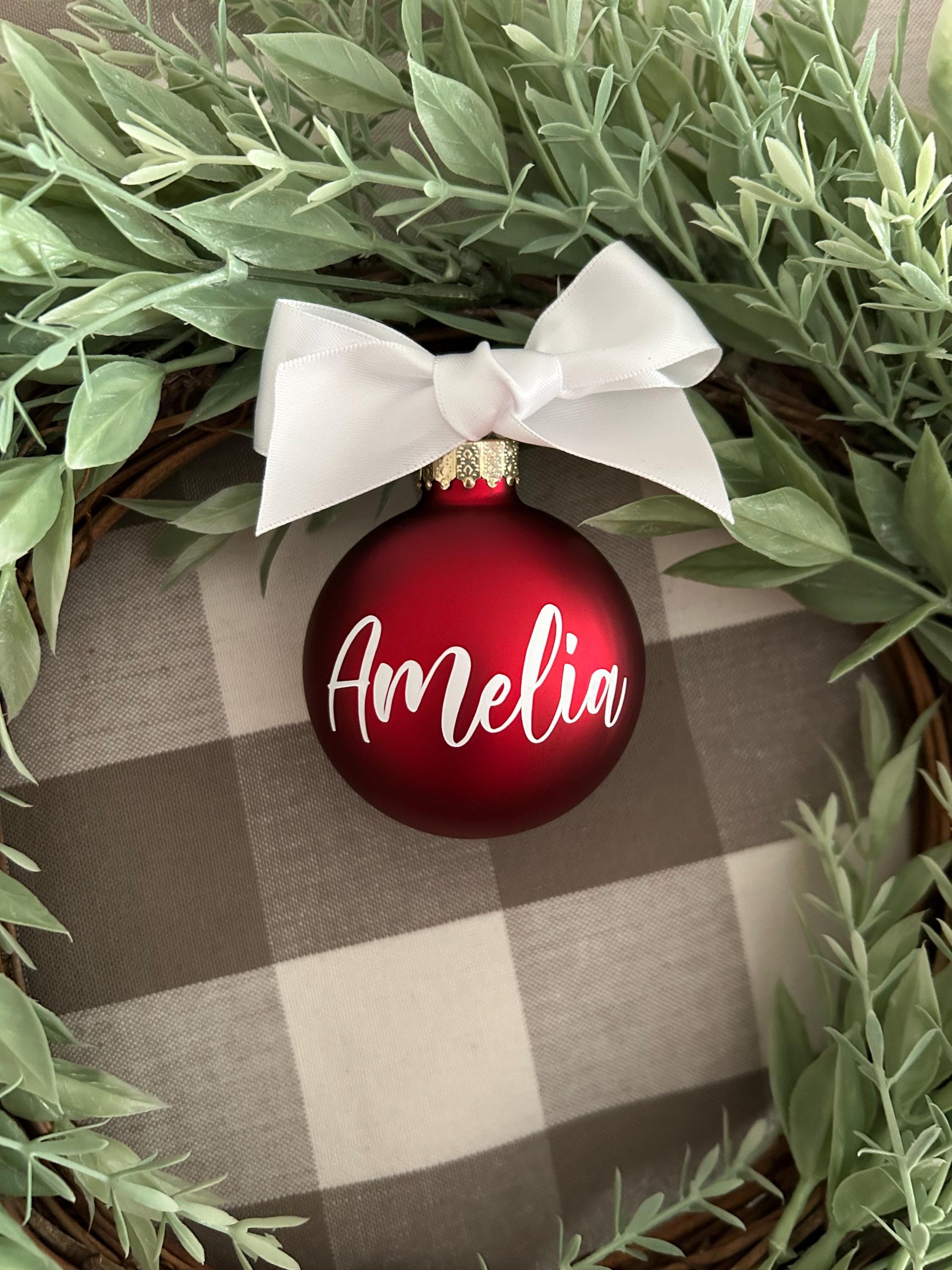 Personalized Glass Christmas Ornament: Script Name, Red or Green - Etsy