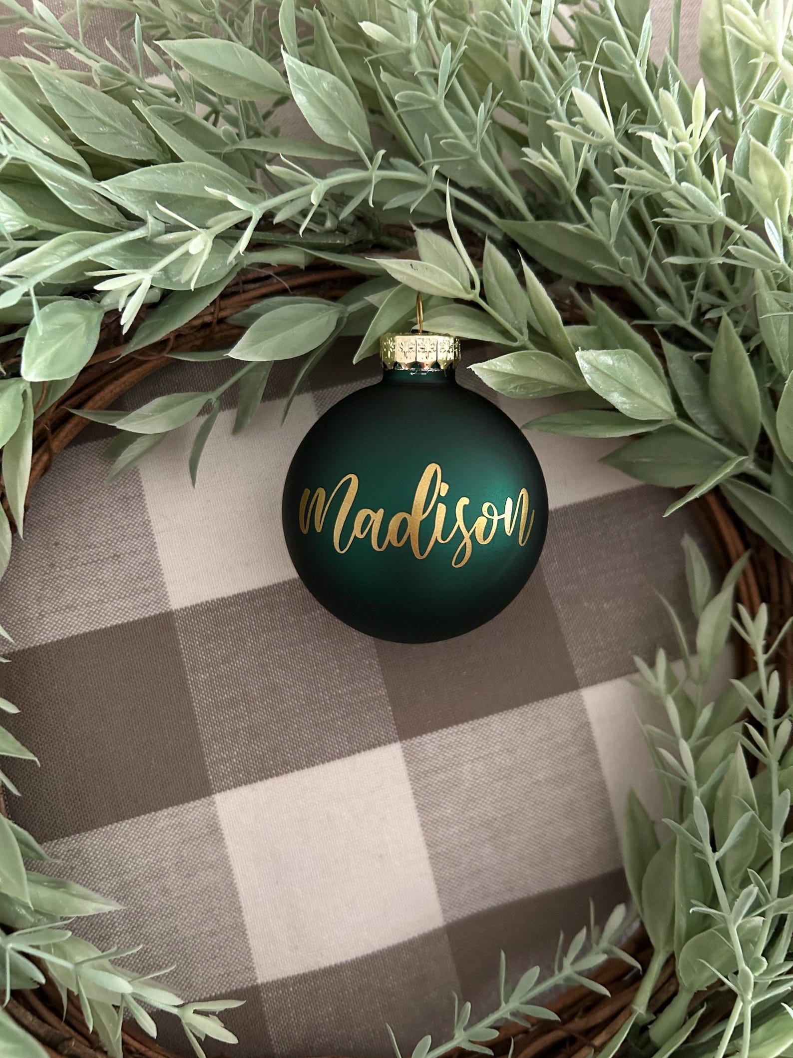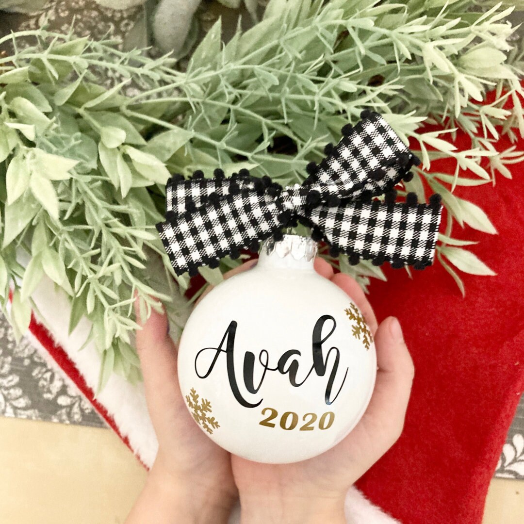 Personalized Christmas Ornament: Script Name, Plaid Ribbon, Gift Box - Etsy