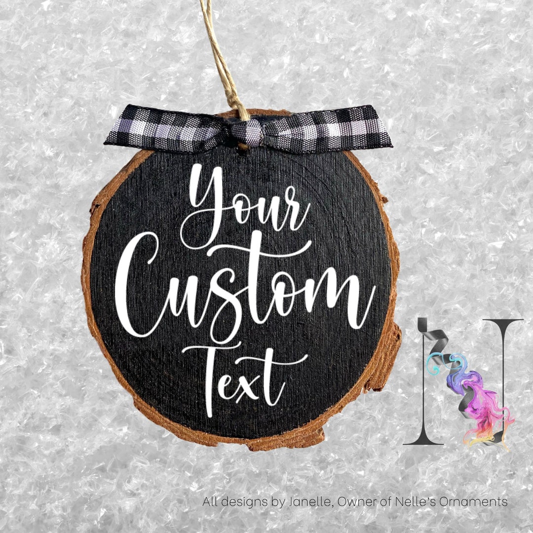 Your Custom Text Ornament Script Wood Slice Ornament Rustic Wood ...