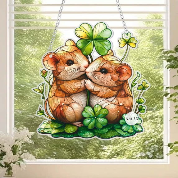 Acrylic Hanging Ornament, 2D Flat Squirrel Clover Design, 1 Piece, for ...
