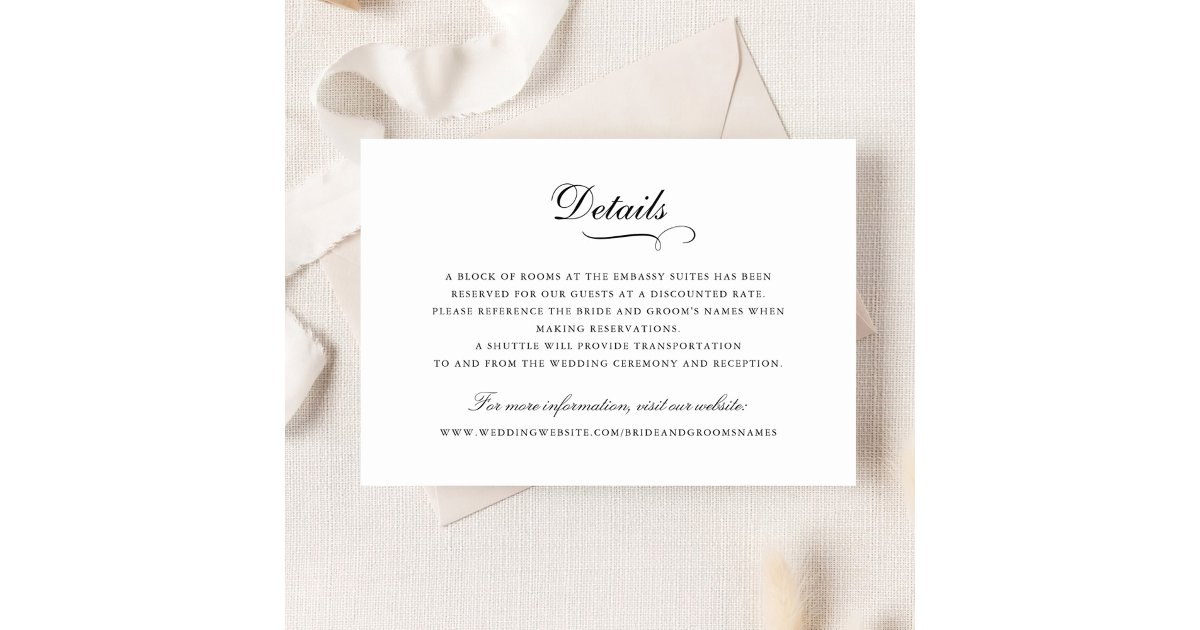 Elegant Calligraphy Ornament Script Wedding Detail Invitation | Zazzle
