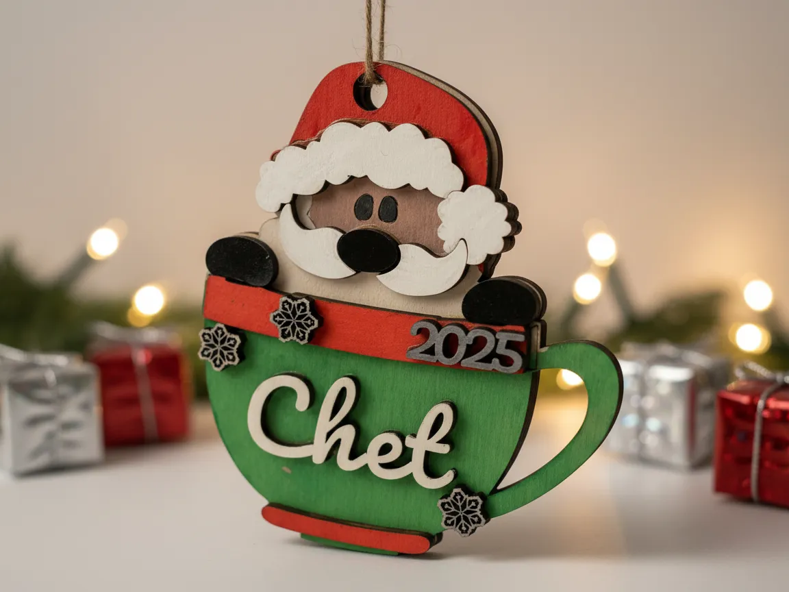 Santa in a teacup Christmas Ornament 2025 | Free Files - Atomm