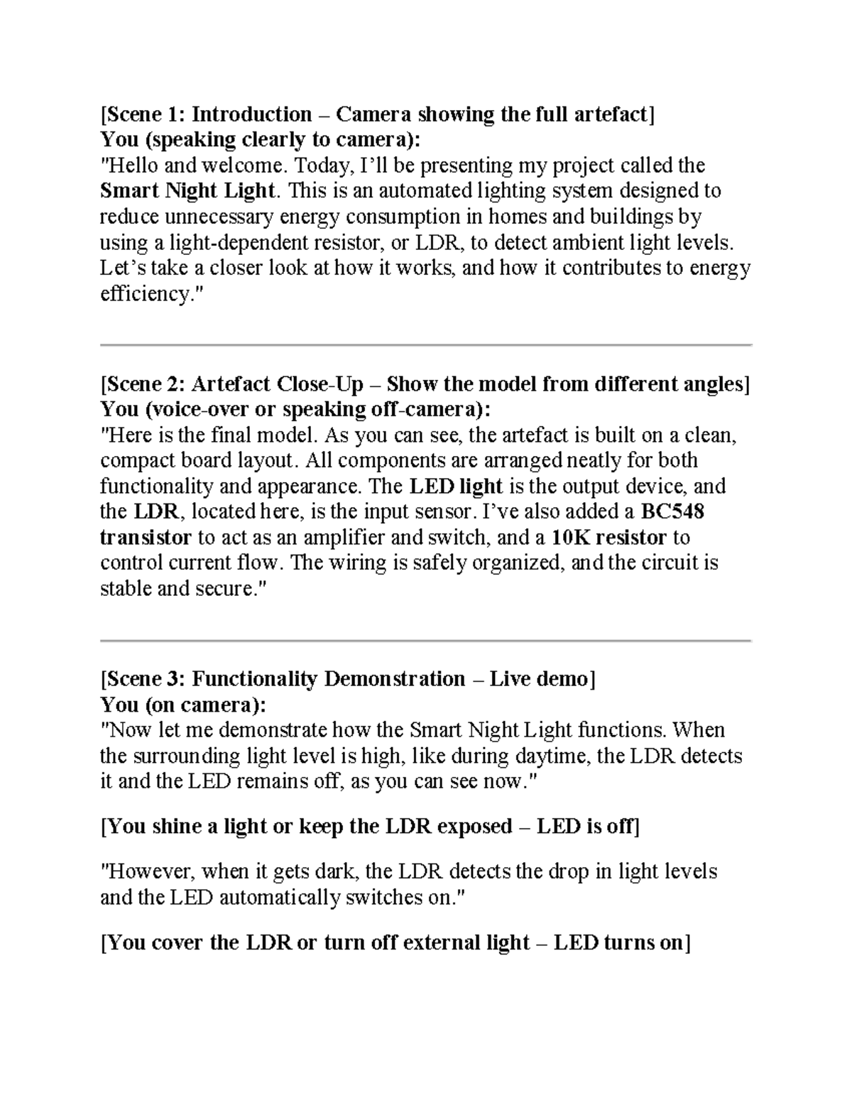 Script for PAT JOT220: Smart Night Light Project Presentation - Studocu