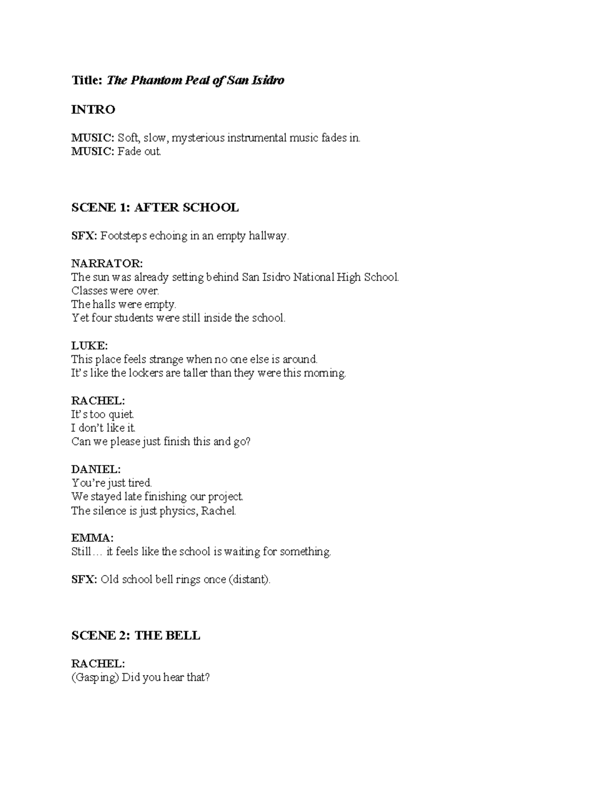 Radio Drama Group VIII: The Phantom Peal of San Isidro Script - Studocu