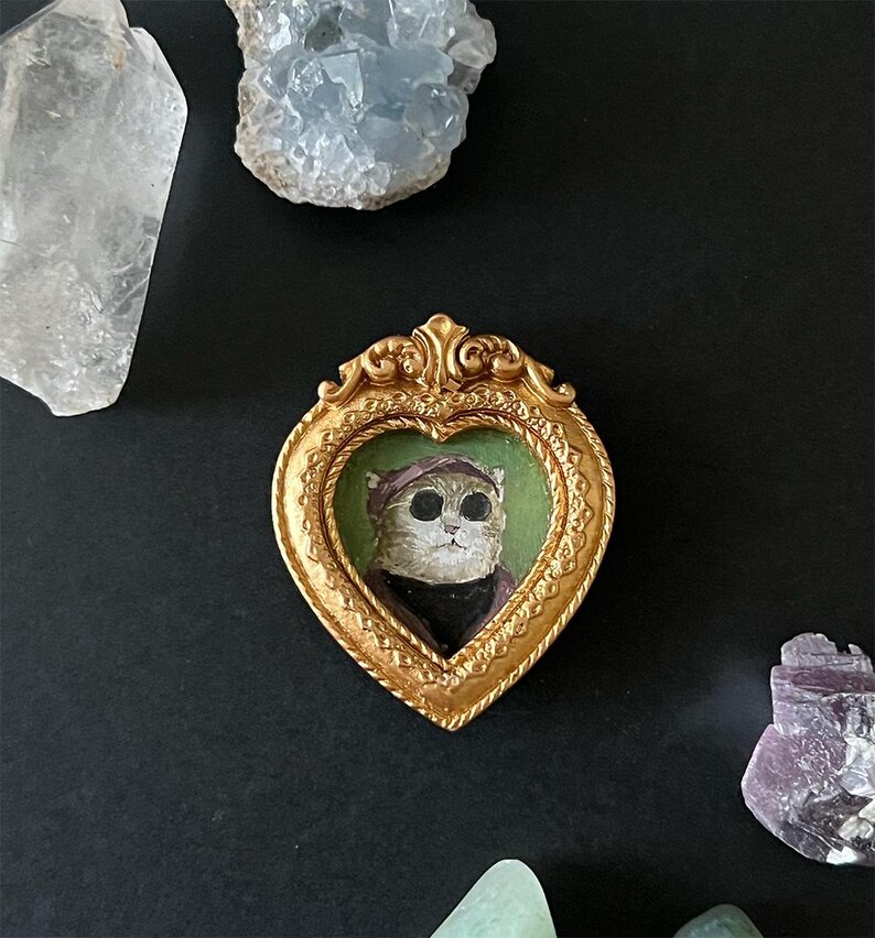 Mini Gouache Cat Painting | Ornate Gold Framed Original Art Magnet - Etsy