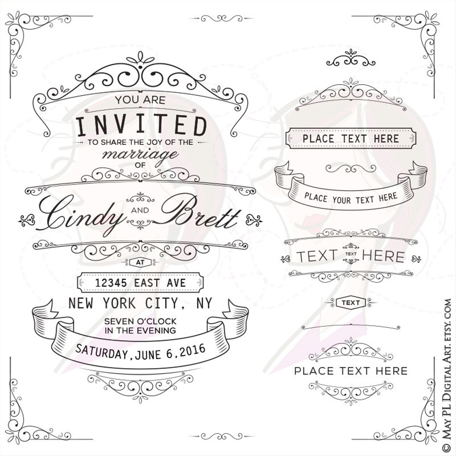 Ornate Wedding Invitation Design - Vintage Elegant Frame Clipart to DIY ...