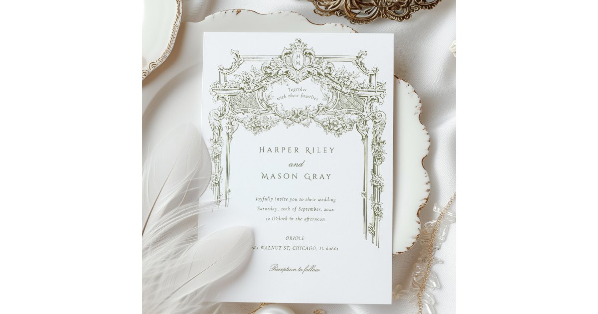 Antique Olive Ornate Wedding Invitation | Zazzle