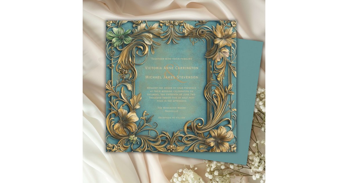 Gold Foil Vintage Wedding Invitations Art Nouveau | Zazzle | Art ...