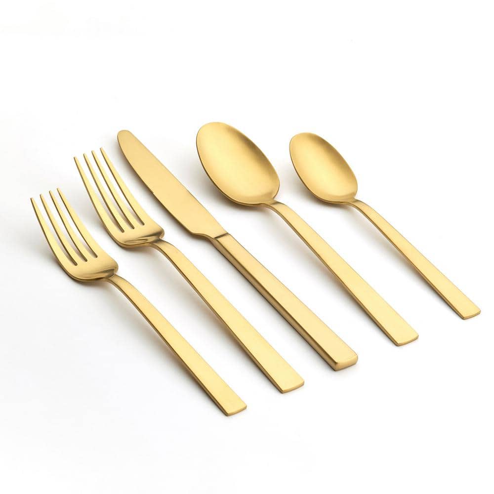 ORNATIVE Clara 20 Piece Matte Gold 18/0 Stainless Steel Flatware Set ...