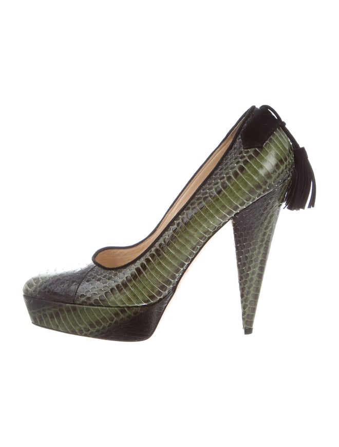Oscar de la Renta Python Platform Pumps - Black Pumps, Shoes - OSC57098 ...