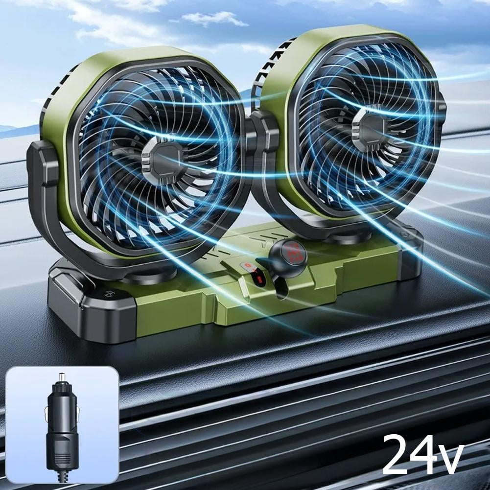 Dual Head Car Electric Fan, 360° Oscillating 12V/24V for Truck SUV ...