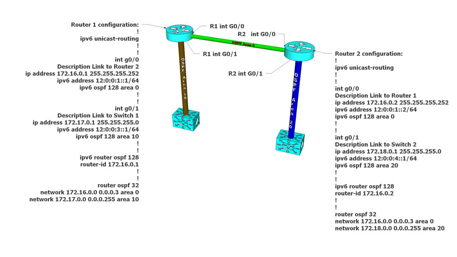 IPv6 OSPF Dual Stack test network configuration example 3D model | CGTrader