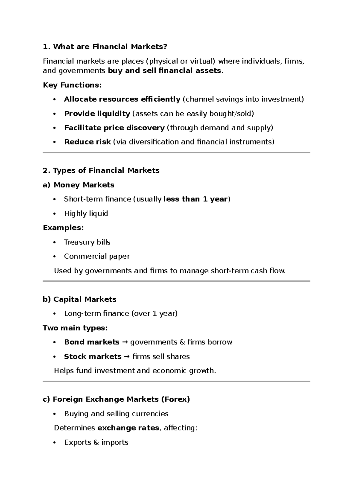 Financial Markets Overview: Functions, Types, and Importance - Studocu