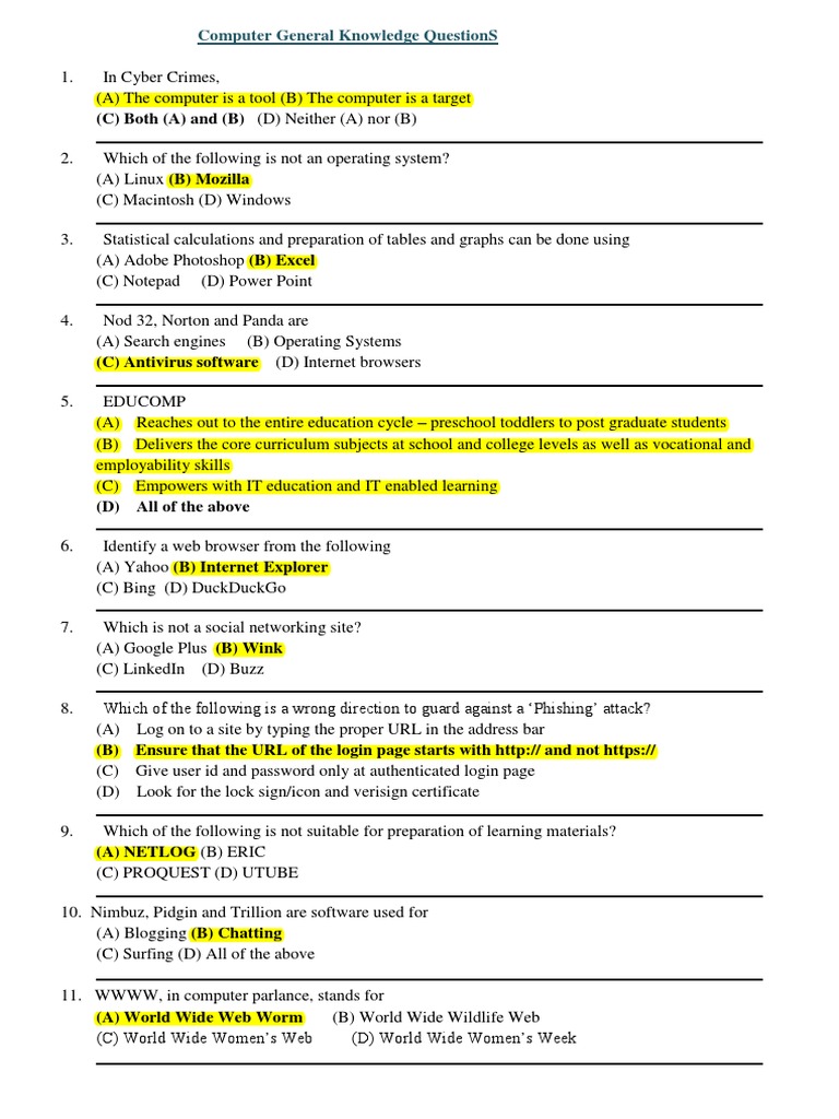 Computer General Knowledge QuestionS | PDF | Computer Data Storage ...