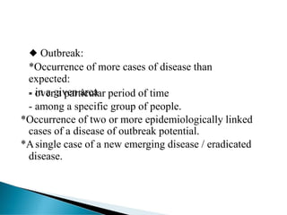 outbreak investigation - types of epidemics and investigating them | PPTX