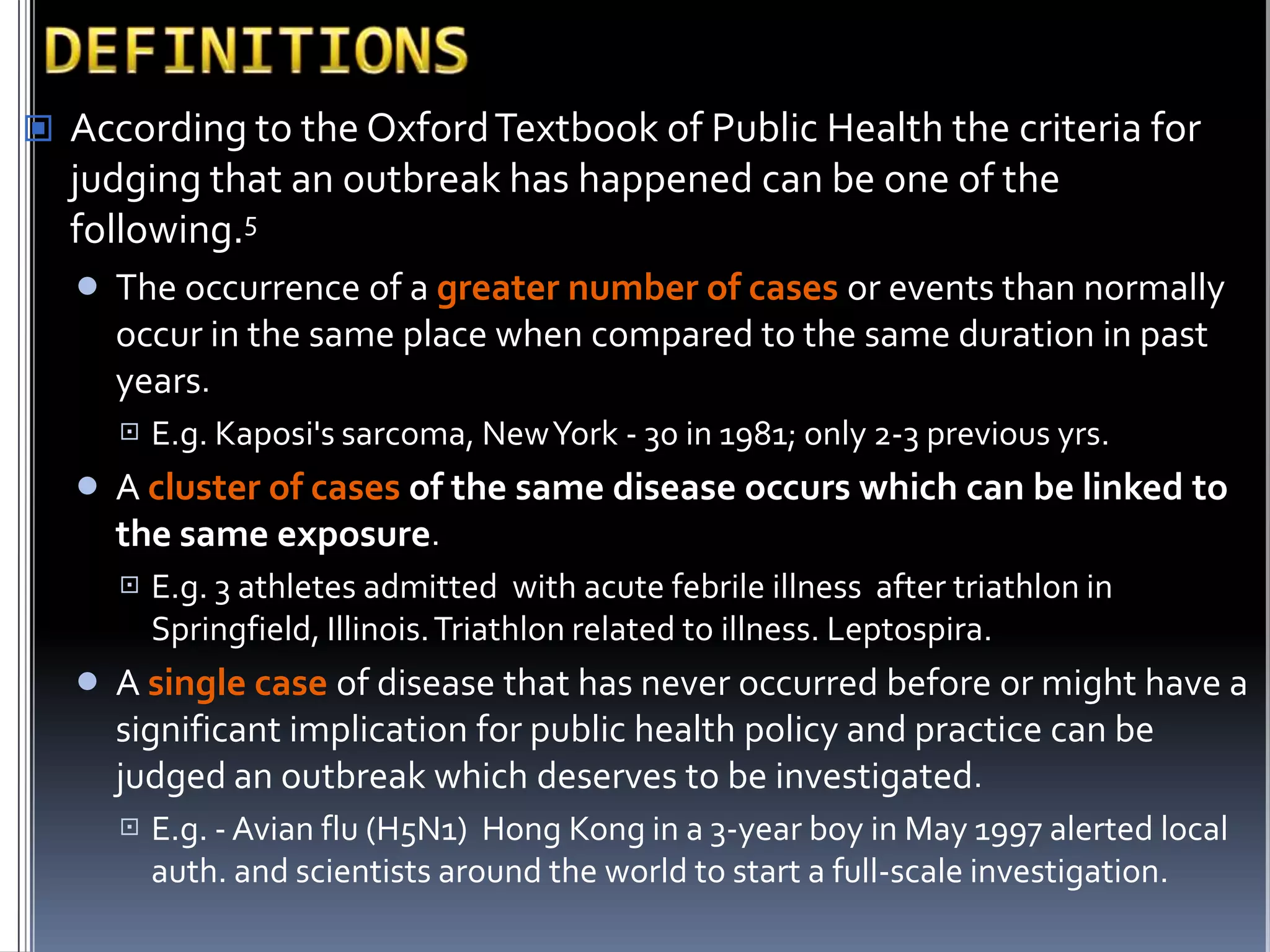 Principles of Outbreak Management WHOCSR Definition of outbreak