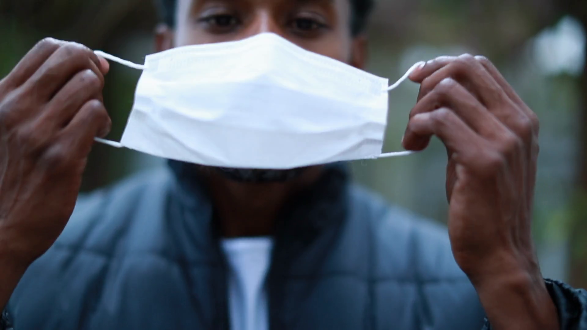 African Black Man Putting On Outbreak Mask Stock Footage SBV-348461971 ...