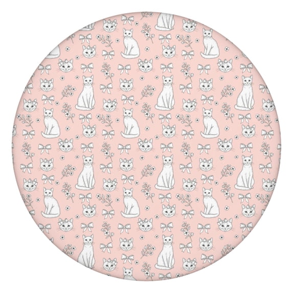 Cat Bow Floral Pink Pattern Round Elastic Tablecloth, 36-44 Inch ...