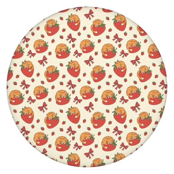 Cat Strawberry Bow Beige Pattern Round Elastic Tablecloth, 45-52 Inch ...