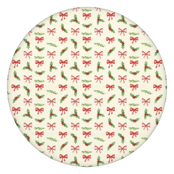 Christmas Holly Bow Light Beige Pattern Round Elastic Tablecloth, 36-44 ...