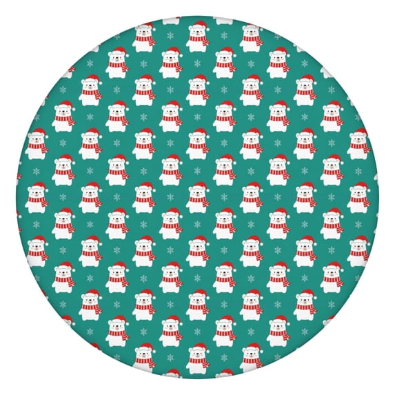 Christmas Polar Bear Snowflake Teal Pattern Round Elastic Tablecloth ...
