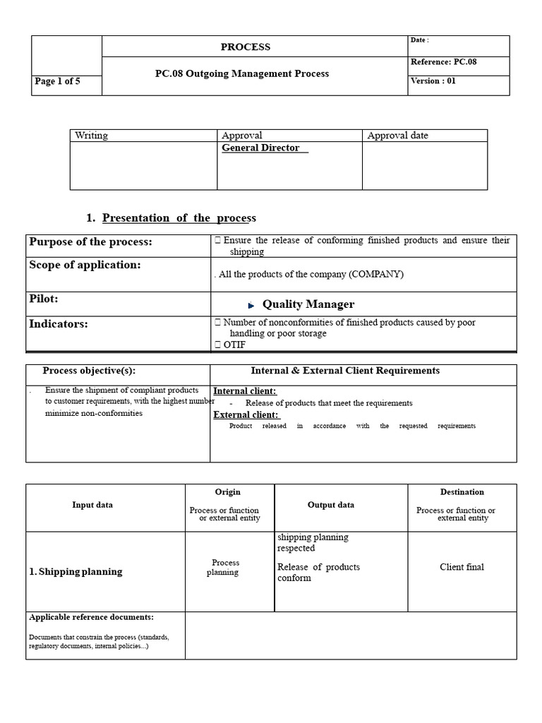 Logistics Outgoing Process Sheet | PDF | Logistics | Warehouse