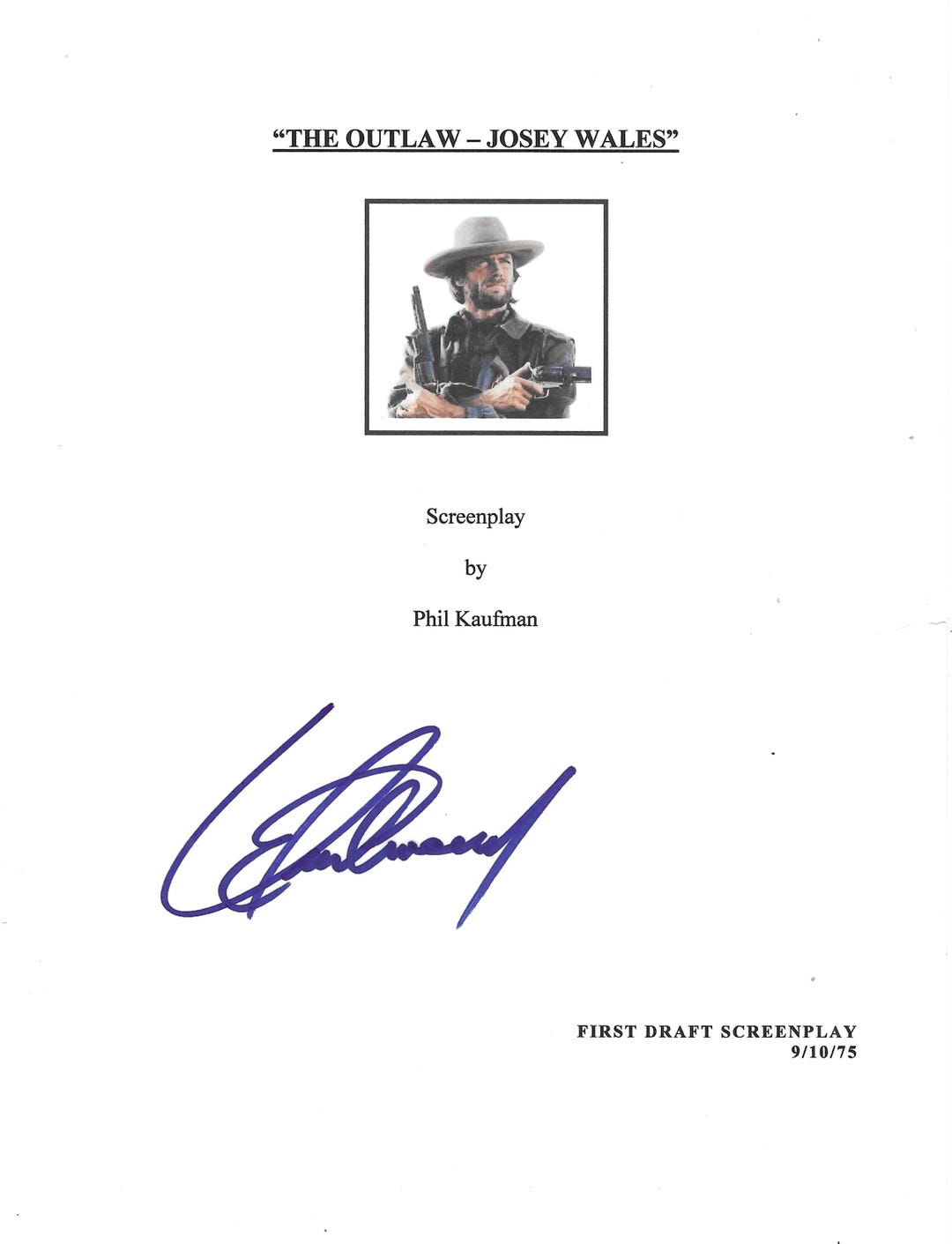 Clint Eastwood, the Outlaw Josey Wales, Signed 8.5x11 Script Cover Page ...
