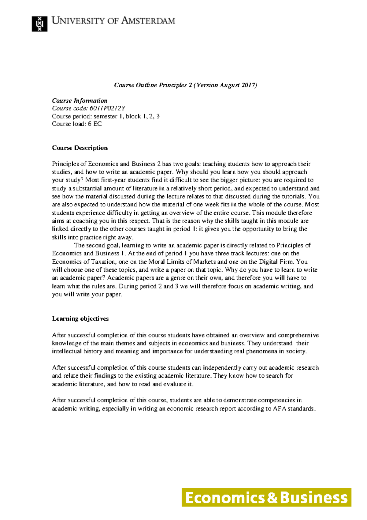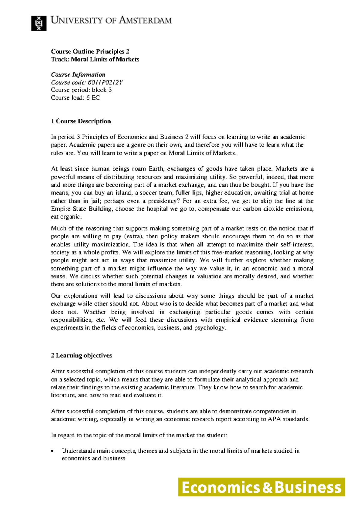 Course Outline Principles of Economics - 20250207 - 123125 - 0000 | PDF