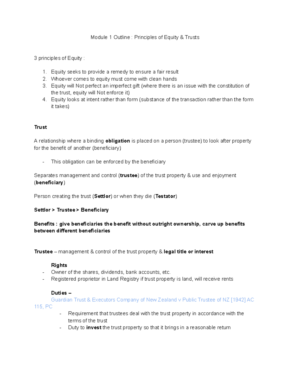 Module 1 Outline Principles of Equity & Trusts - Module 1 Outline ...