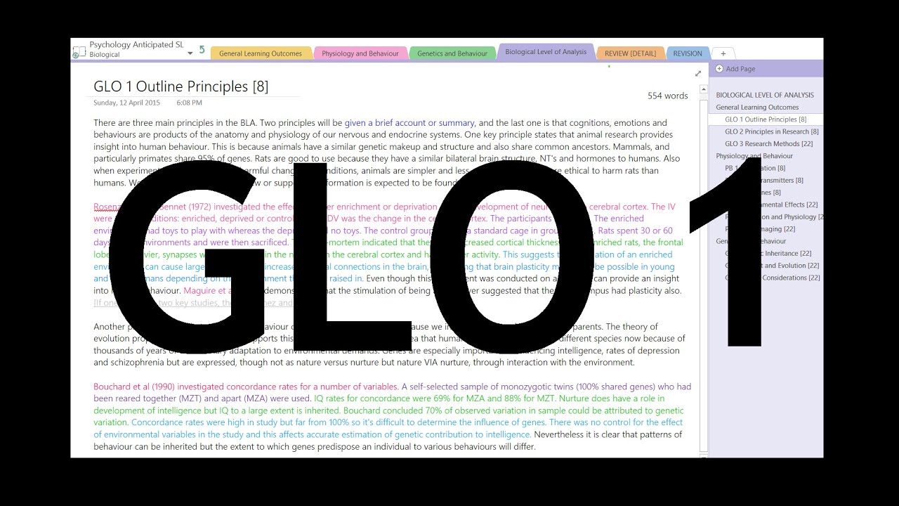 Biological Level of Analysis Review - GLO 1: [8] Outline Principles (IB ...