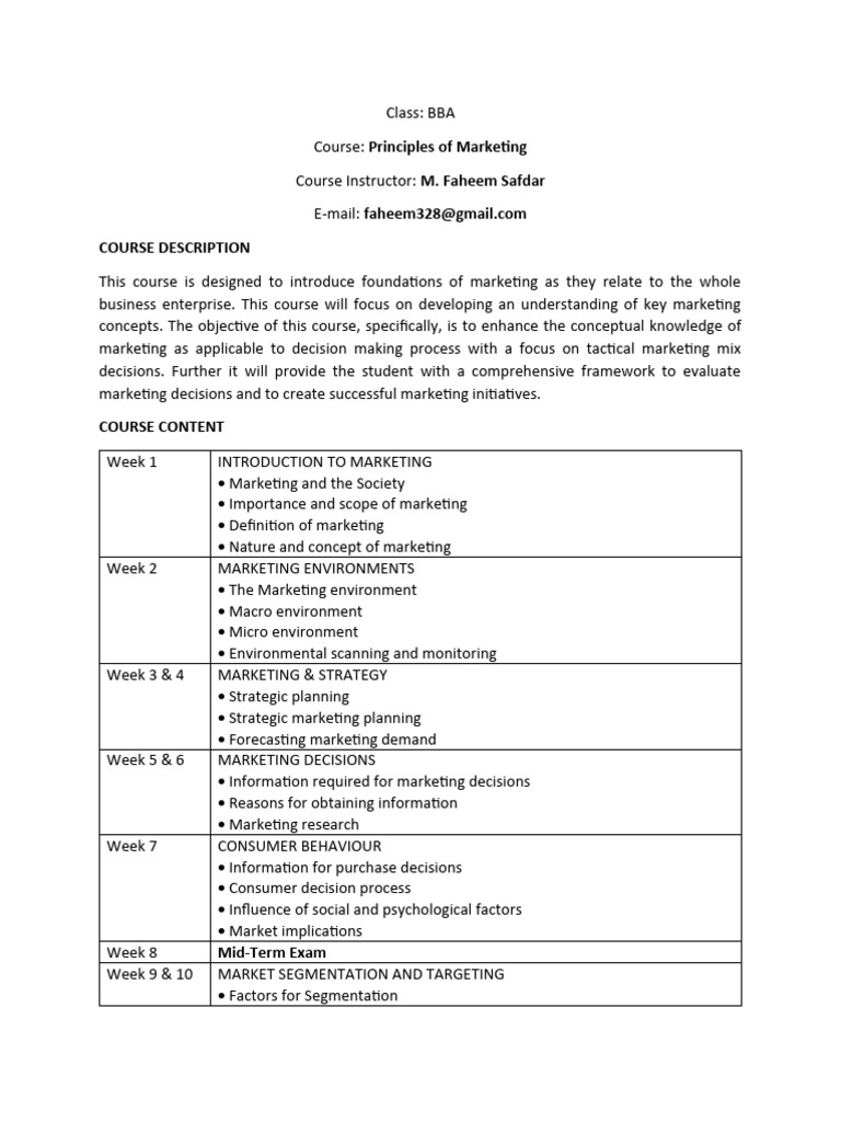 Course Outline Principles of Marketing | PDF | Marketing | Consumer ...