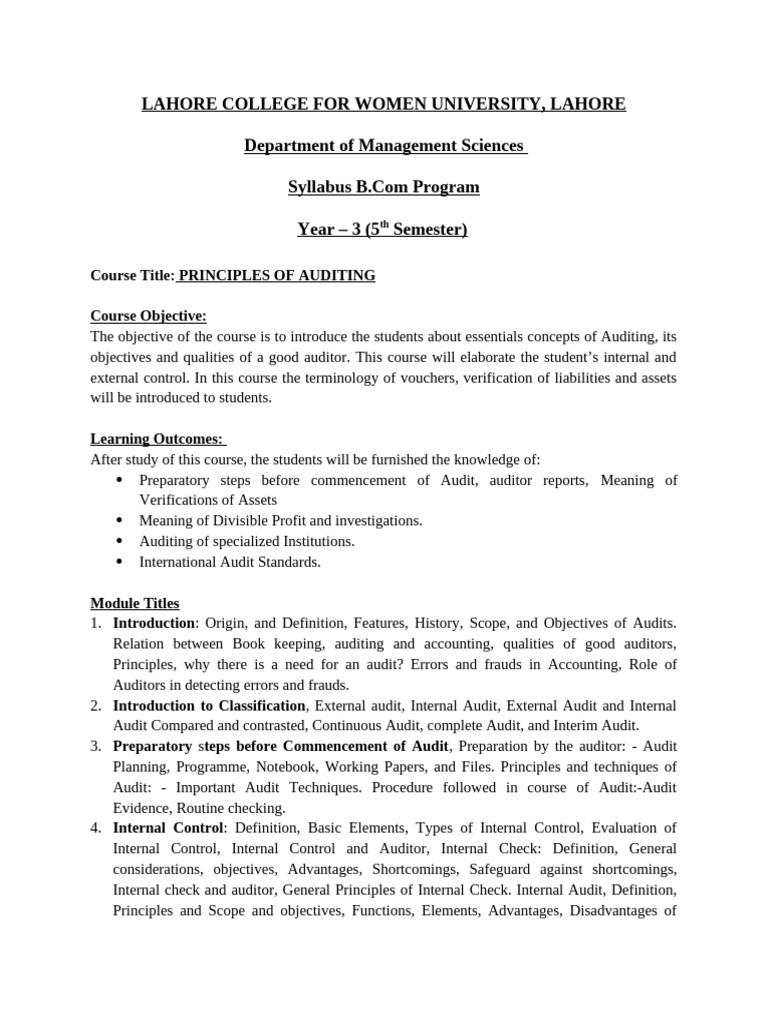 Course Outline Principles of Auditing B.Com V 2024 | PDF | Audit ...