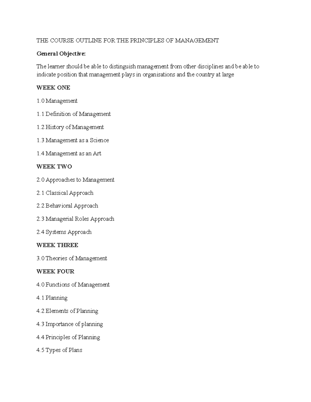 Principles of management (course outline) | DOCX