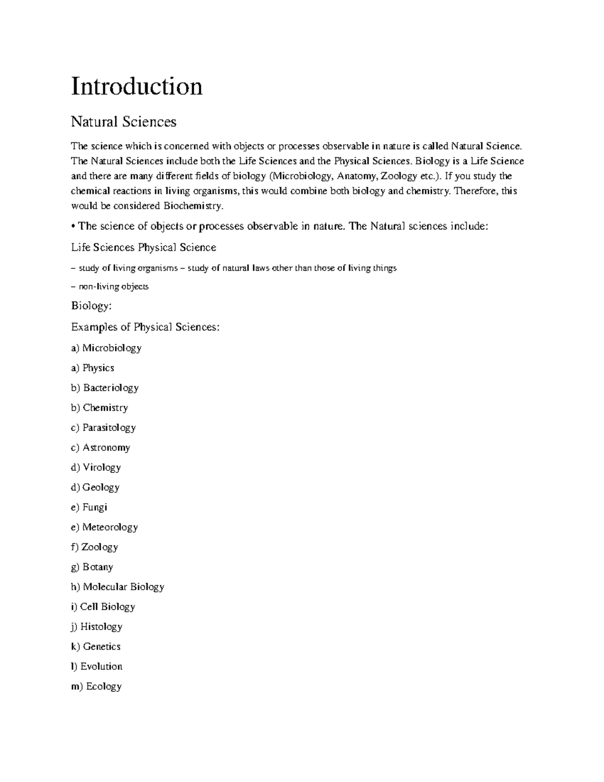 Lecture Outlines for Exam I - Introduction Natural Sciences The science ...