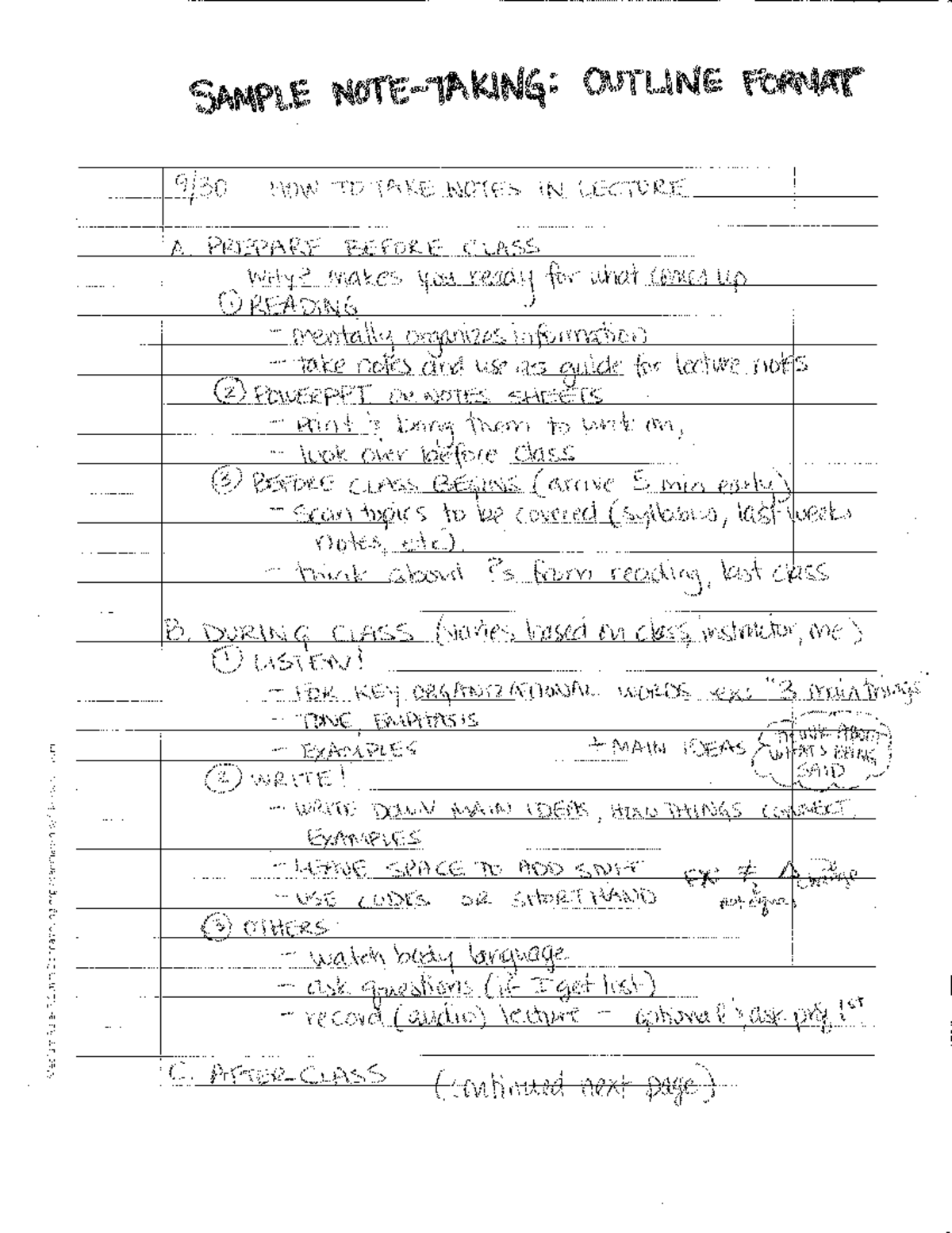 Sample note taking styles - SAMPLE OUTLINE FORMAT HOW TO TAKE NOTES IN ...