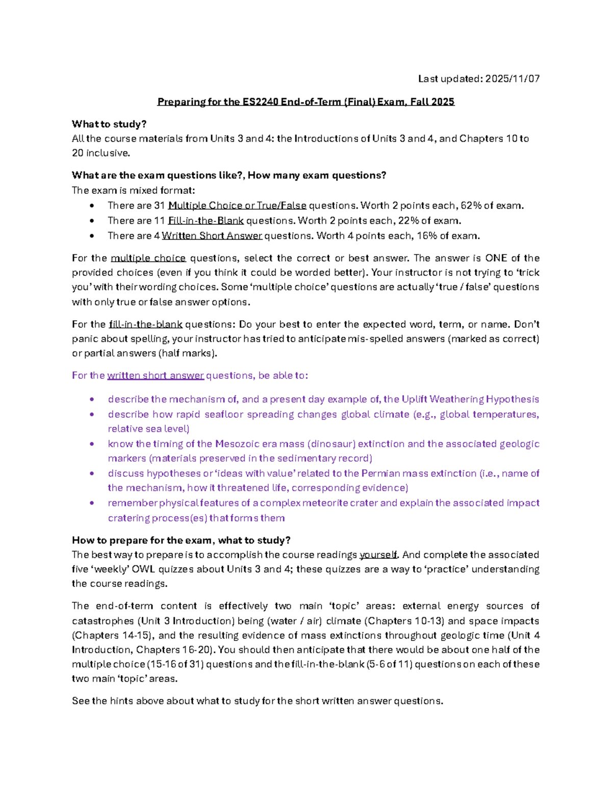 ES 2240 Final Exam Prep: Units 3 & 4 Study Guide - Studocu