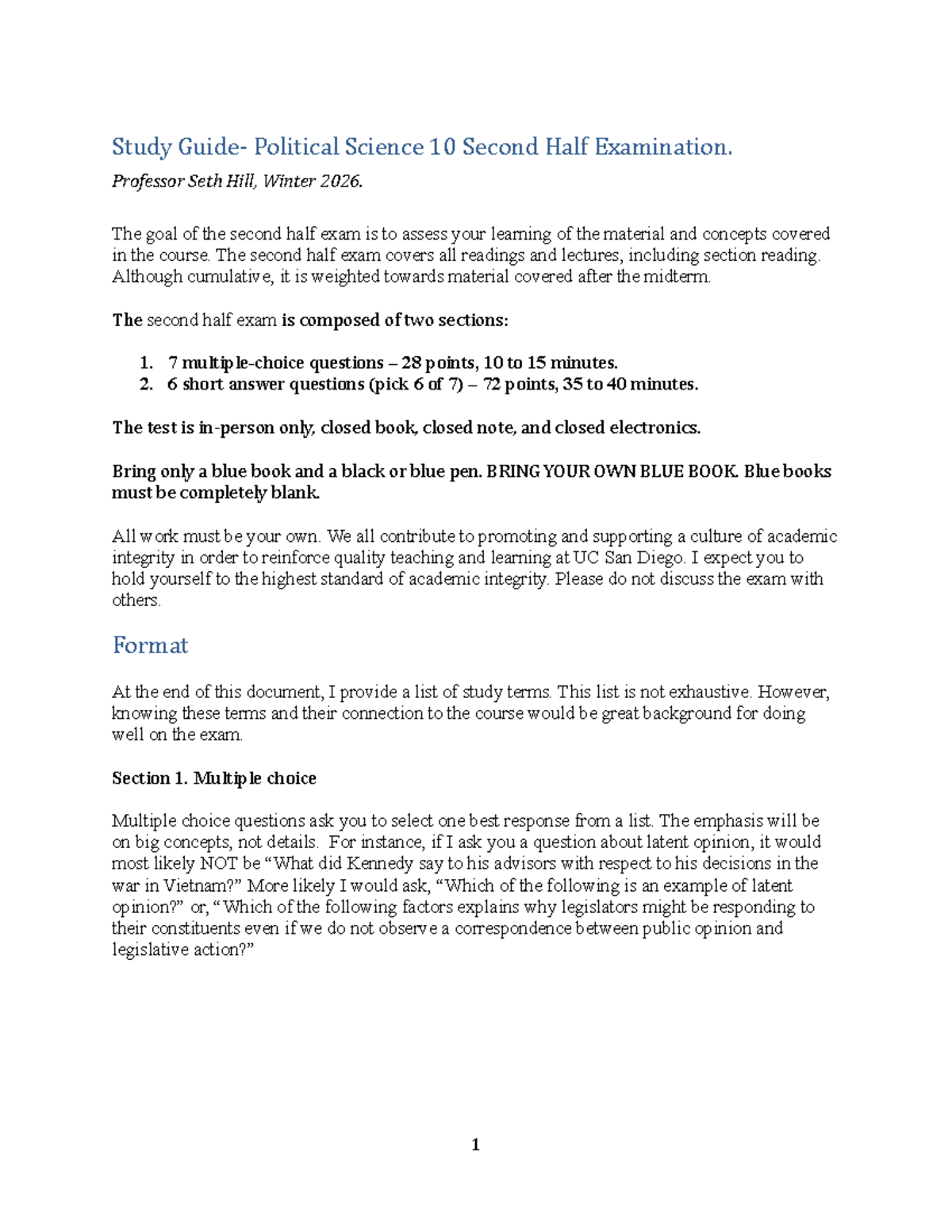 Study Guide - Political Science 10 Second Half Exam - Studocu