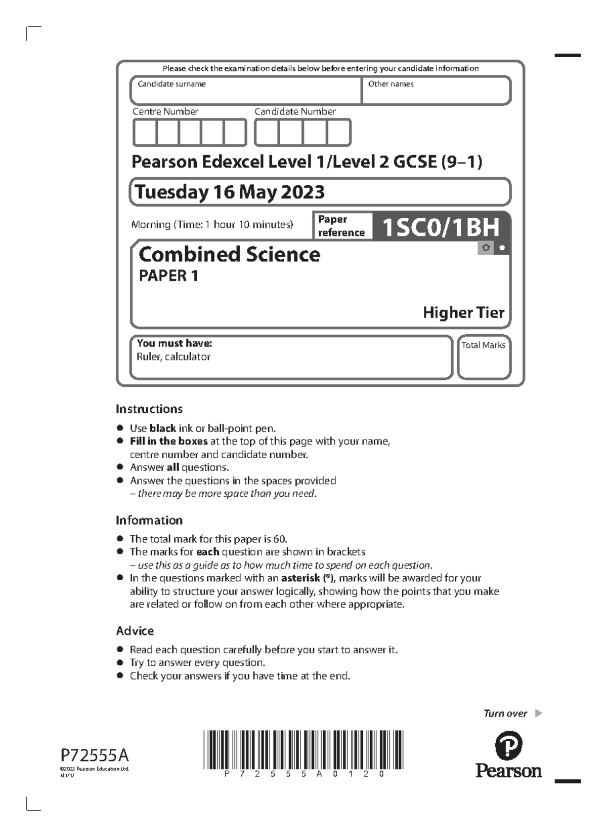 ESCH311sc0 Combined Science Paper 1 Higher Tier Exam Details - May 2023 ...