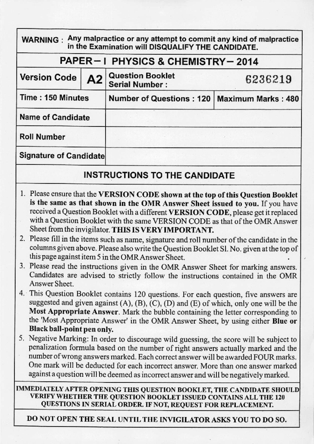 Hsslive KEAM 2014 Physics Chemistry Question Paper - Version A2 - Studocu