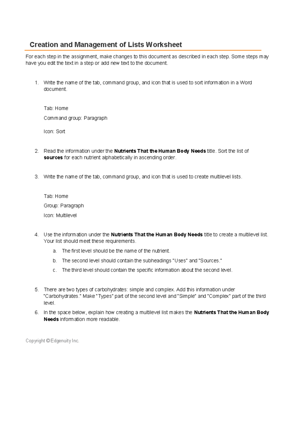 Mhm - drrz: Creation & Management of Lists Worksheet - Studocu
