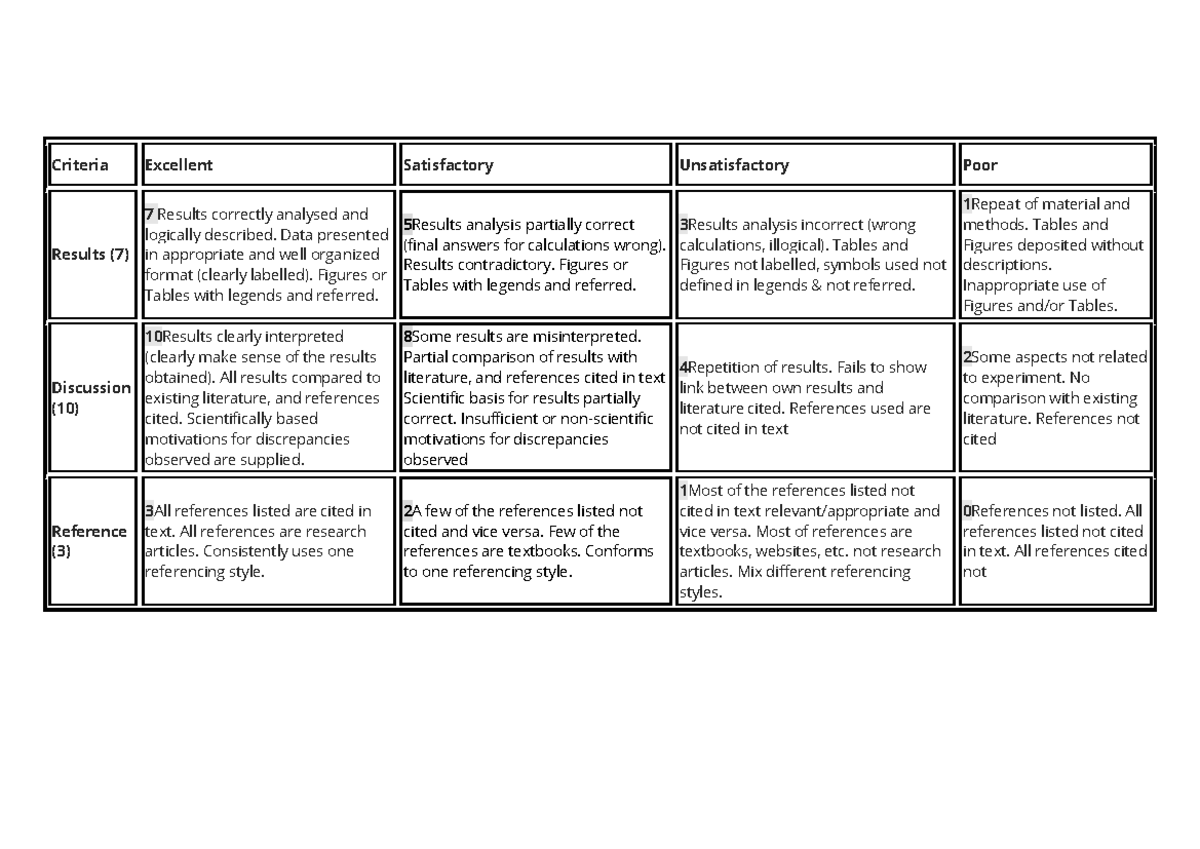 Assignment Rubric - Criteria for Excellent Results Analysis - Studocu