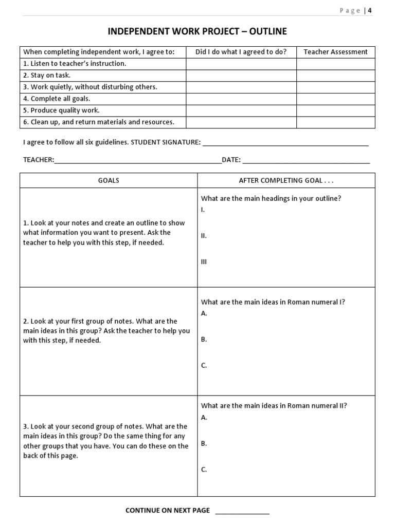 Independent Work Project - Outline: CONTINUE ON NEXT PAGE | PDF