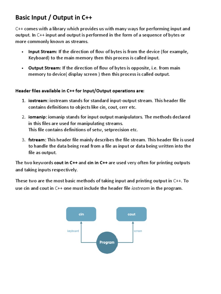 Basic Input Output in CPP | PDF | Input/Output | C++