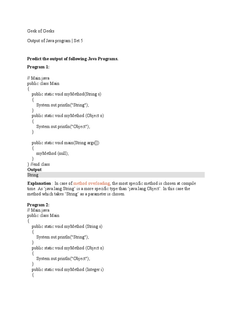 Output of Java program-GOG | PDF | Method (Computer Programming) | Java ...