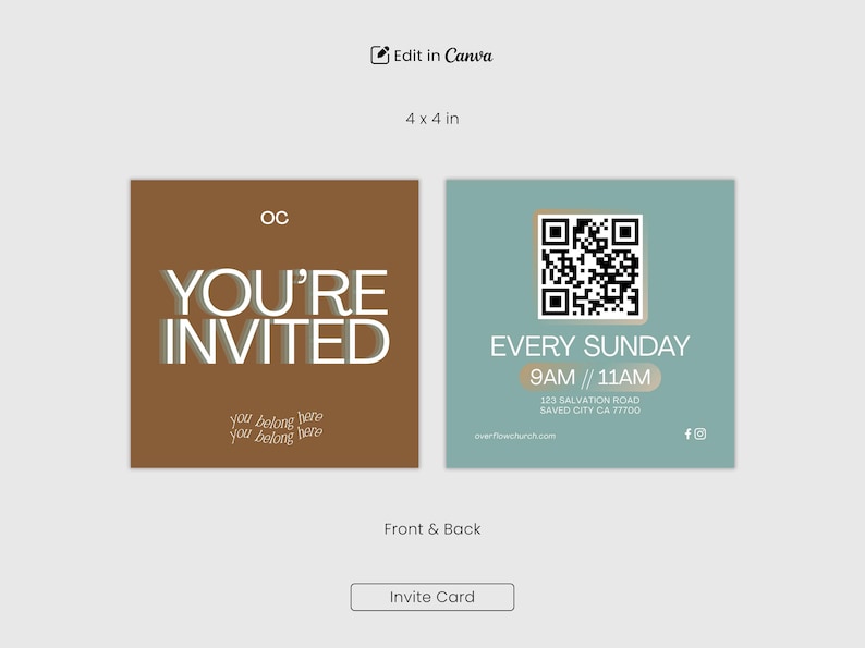 Church Invite Card, Square Invitation, Church Invitation, Editable ...