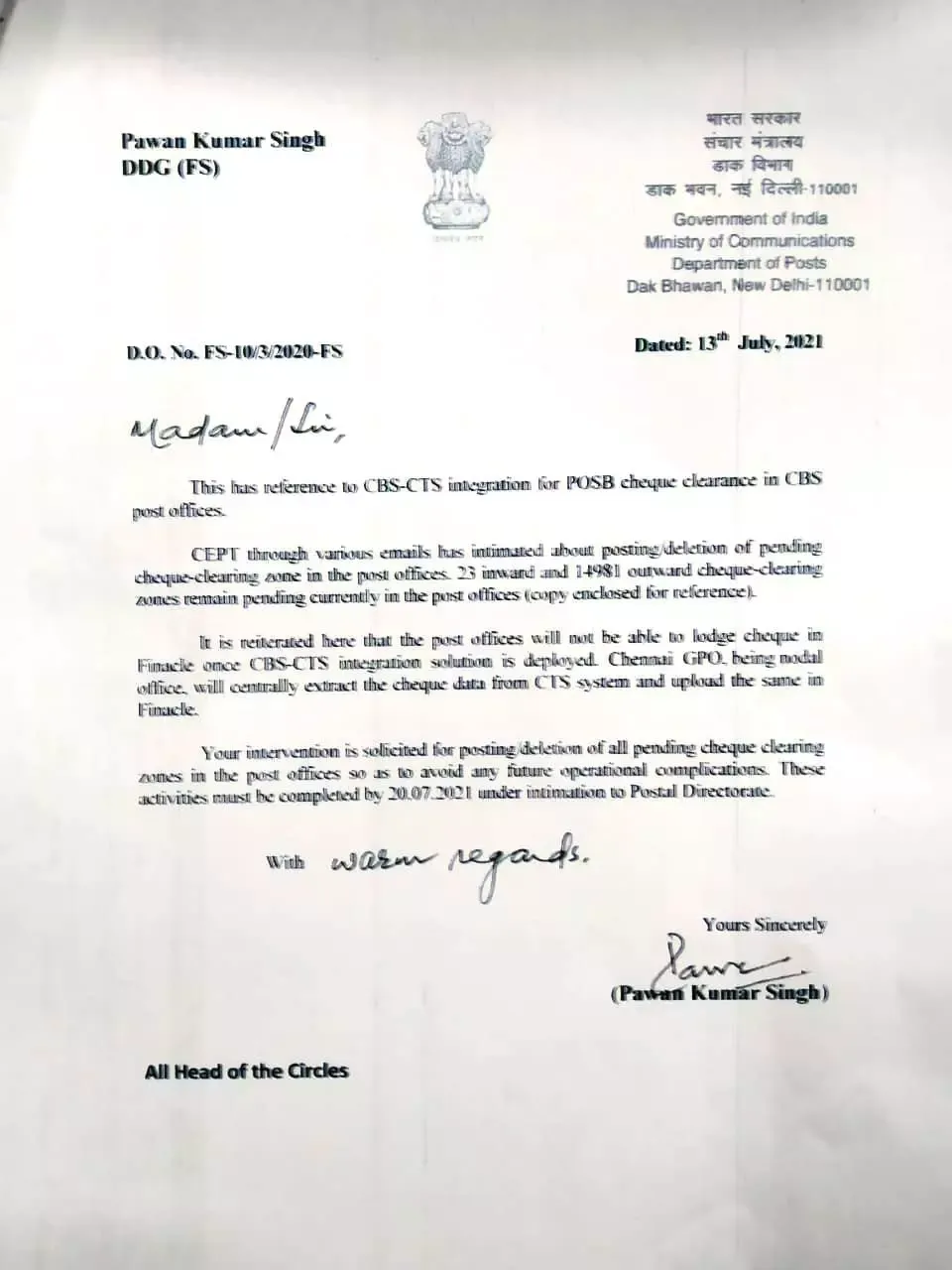 CBS CTS Integration for POSB Cheques Clearance in CBS Post Offices | 23 ...
